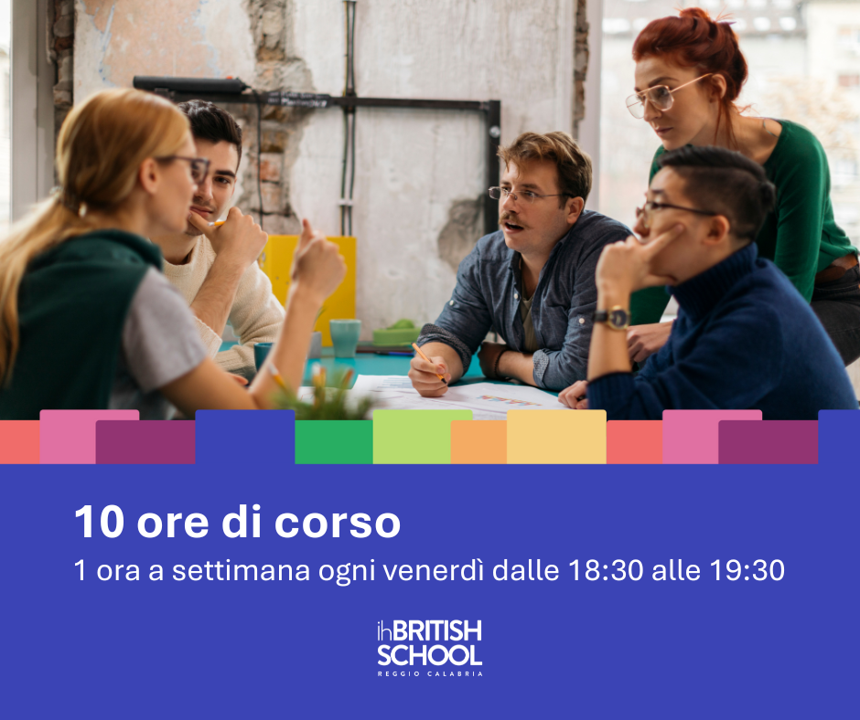 Conversation Club è il corso che trasforma l’inglese da lingua “imparata” a lingua vissuta. Un percorso di 10 ore totali, con incontri di 1 ora a settimana ogni venerdì dalle 18:30 alle 19:30, a partire dal 7 novembre, pensato per gli studenti adulti. Un’ora dedicata interamente alla conversazione, con attività coinvolgenti, giochi linguistici e momenti di confronto reale su temi attuali e quotidiani. Puoi scegliere se partecipare online oppure in presenza, sempre in un ambiente rilassato, stimolante e ricco di interazione. Solo conversazione autentica, risate e tanta pratica utile.